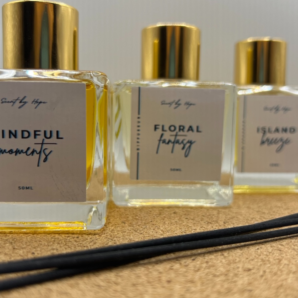Pack de 3 Diffuseurs à Bâtonnets – Oud Boisé, Exotique et Floral – Signature Hope Arts Studio